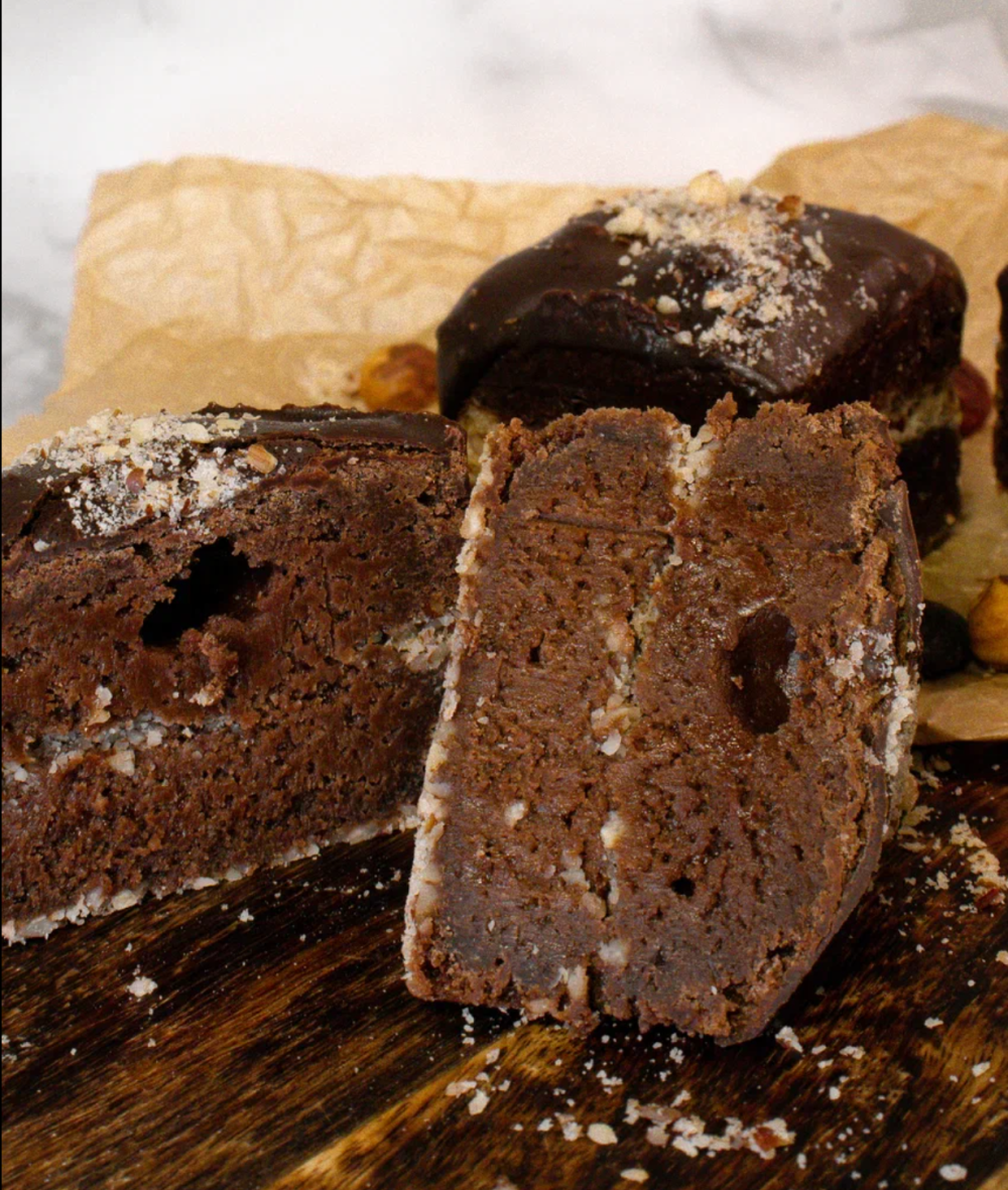 Шоколадный десерт на основе сливочного масла и тёмного шоколада, с добавлением фундука и покрытый глазурью из тёмного шоколада.