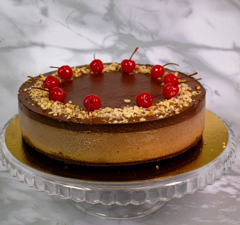 Десерт на основе кокосовых сливок, орехов кешью и кокосового масла, без добавления глютена, с начинкой из свежей вишни. Покрыт ганашом из кокосовых сливок и тёмного шоколада.