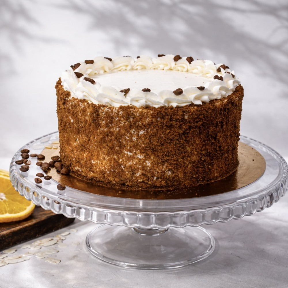 Бисквит с добавлением натурального молотого кофе, пропитанный сливочно-кофейной пропиткой, с