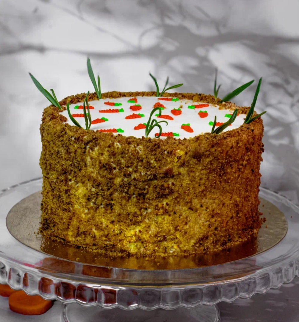 Морковные бисквиты с добавлением карамелизированного грецкого ореха и солёной карамели, смешанной с этим же орехом.