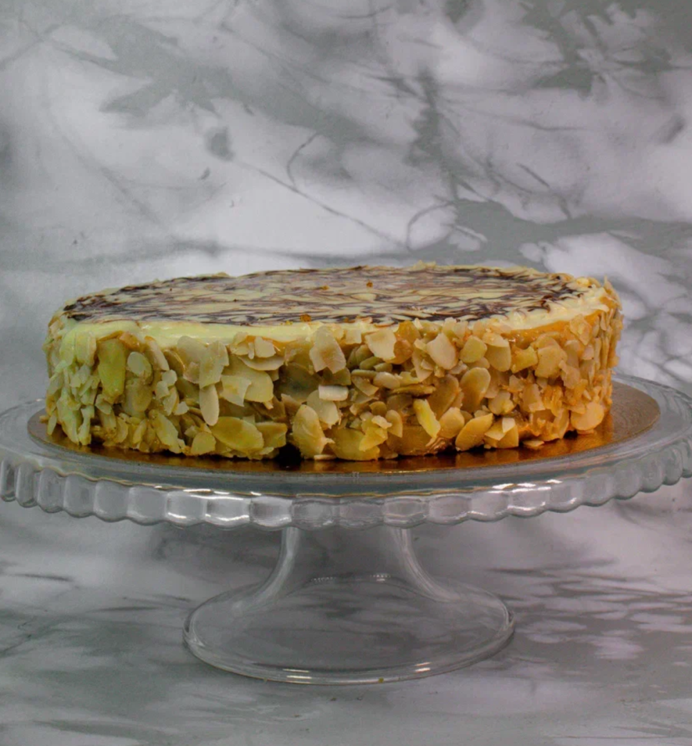 Воздушно-ореховые коржи, с добавлением грецкого ореха, пропитанные кремом на основе сливочного масла и варёной сгущёнки, покрытые белым шоколадом.